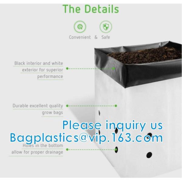 Standard grow bags with fluted side walls and pre-punched drainage holes along the bottom. Thick plastic can be reused several times with sterilization. These grow bags are reversible with white on one side and black on the other. Please inquiry us